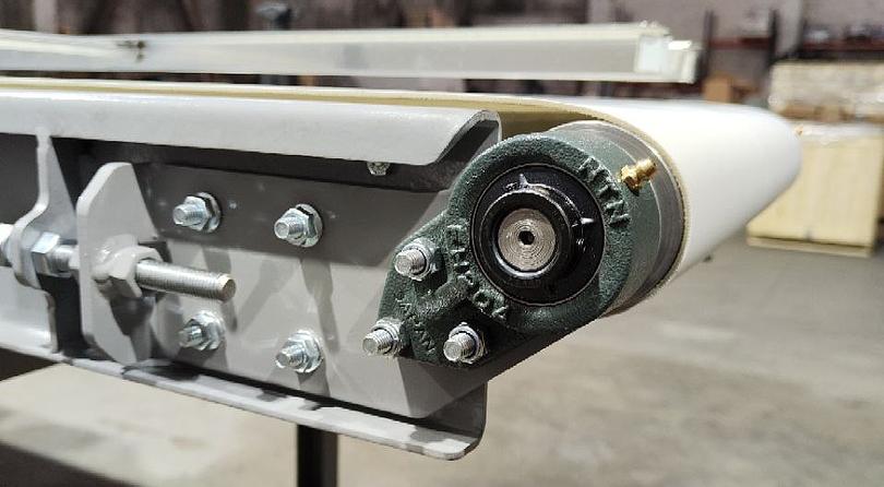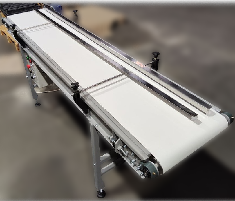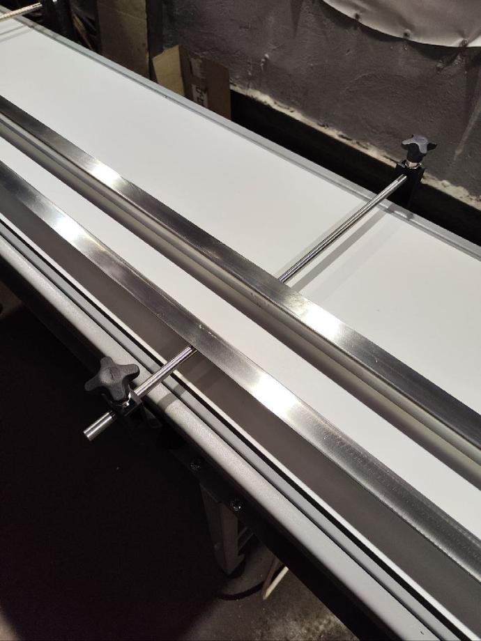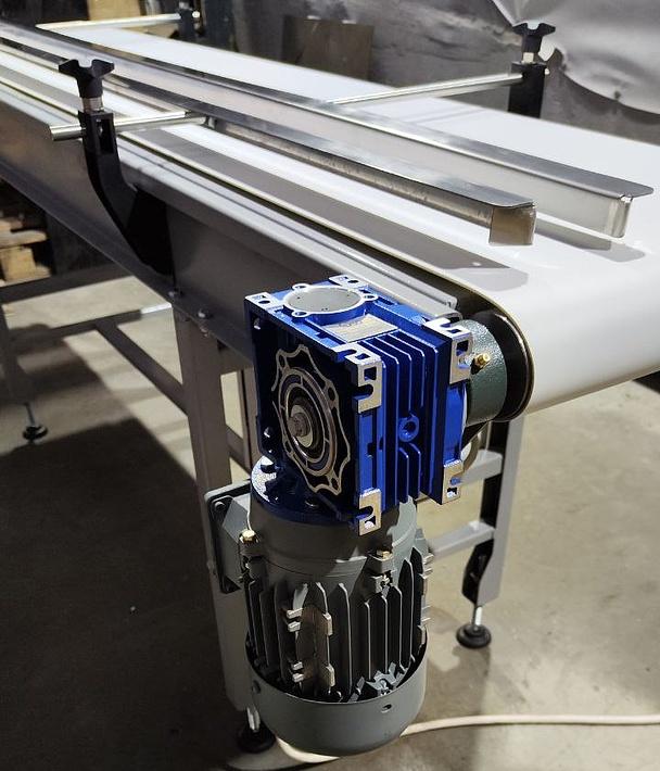 Ми успішно завершили ще один проект — виготовлення стрічкового конвеєра довжиною 2000 мм. Конвеєр створений із використанням якісних компонентів, таких як конвеєрна стрічка 2PURB40 від Reveyron (Франція) з направляючим профілем, поліетиленові ролики, підшипникові вузли UCFB 204 та мотор-редуктор NMRV 040 (0,25 кВт).