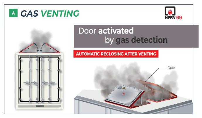 У разі, якщо термічний розбіг виходить з-під контролю і переходить у вибух, система DUAL-VENT, яка пройшла динамічні випробування та має сертифікований вибухозахисний вентиль, відкриється під впливом надлишкового тиску, створеного вибухом.