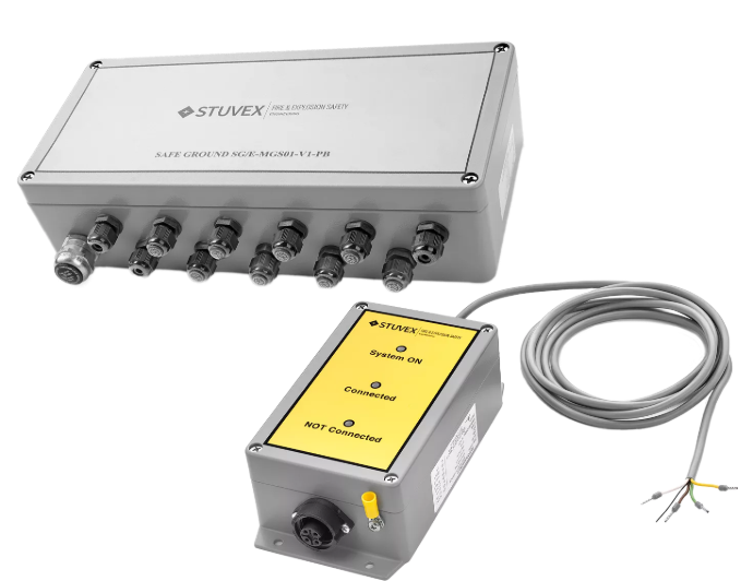 Система забезпечує безпечне заземлення провідних об’єктів за допомогою заземлювального затиску, гарантуючи безпечні операції завантаження та розвантаження. Вона є частиною превентивної системи на виробничих установках.