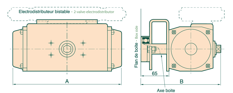 - Електромагнітним клапаном 5/2 1 EV 48V AC