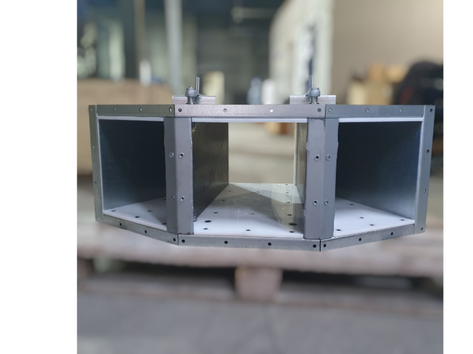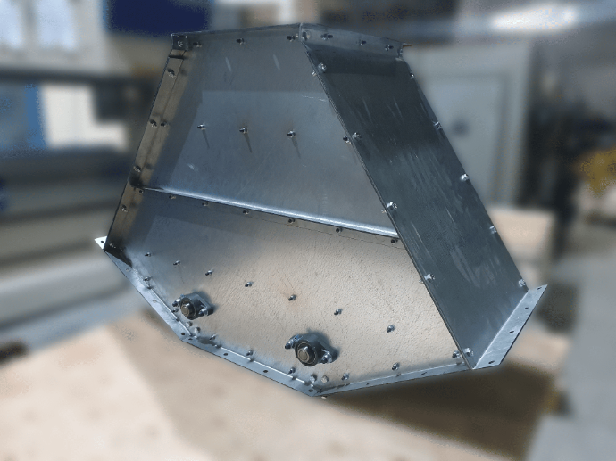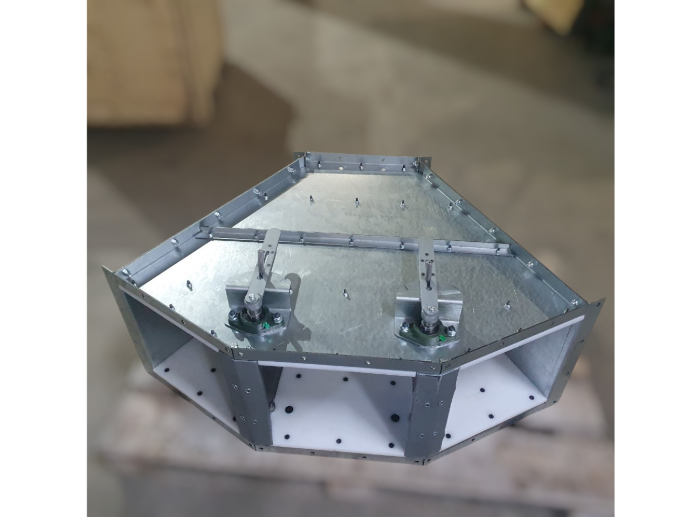 Завдяки використанню якісних матеріалів — оцинкованої сталі, зносостійкої футеровки PE1000 та перекидного флажка з HARDOX 500 — клапан відзначається тривалим строком служби, стійкістю до корозії та стабільністю роботи навіть у складних виробничих умовах.
