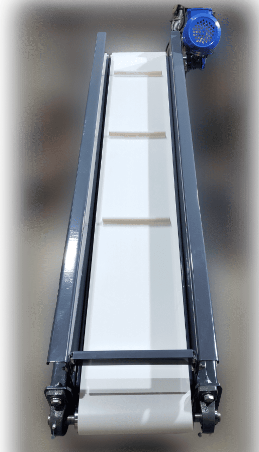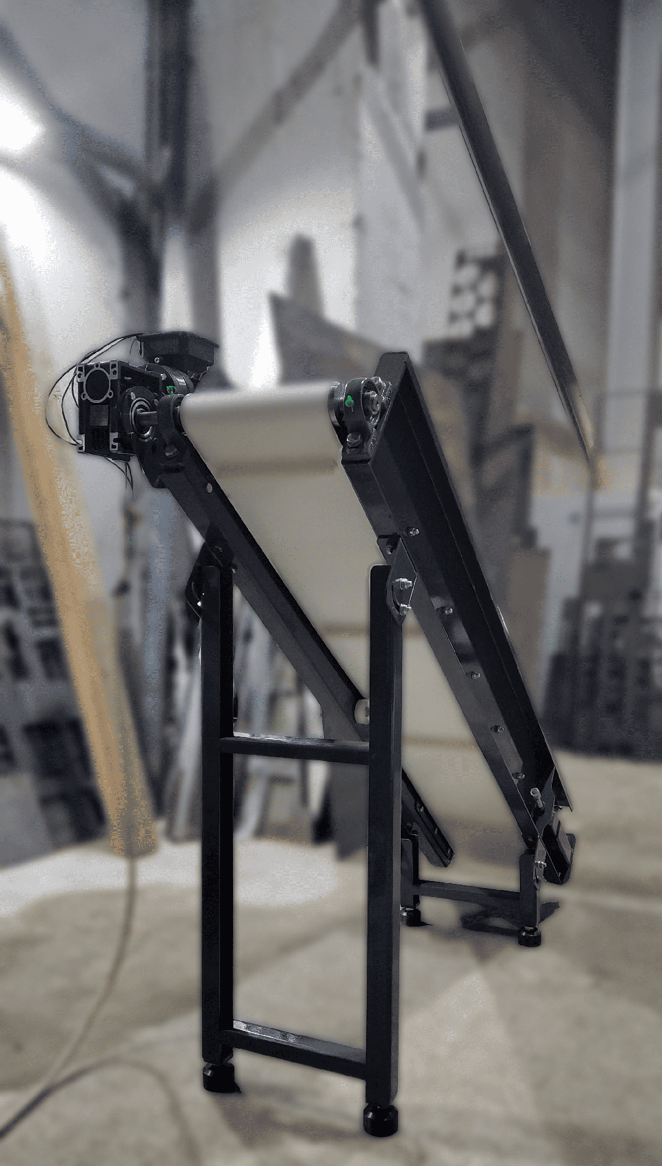 У рамках реалізованого проєкту був розроблений і впроваджений похилий стрічковий конвеєр довжиною 1,5 метра, призначений для транспортування упакованого продукту. Конвеєр виготовлений зі сталі товщиною 3 мм, що забезпечує міцність і довговічність конструкції. Для приводу використовується черв'ячний мотор-редуктор NMR, який забезпечує плавну та ефективну роботу обладнання. Цей проєкт гарантує надійне та стабільне переміщення упакованих продуктів у виробничому процесі.
