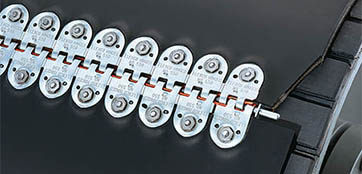 Рухливі (Alligator) з’єднання гарантують надійне з’єднання конвеєрної стрічки без утворення просипання і мають великий термін роботи.