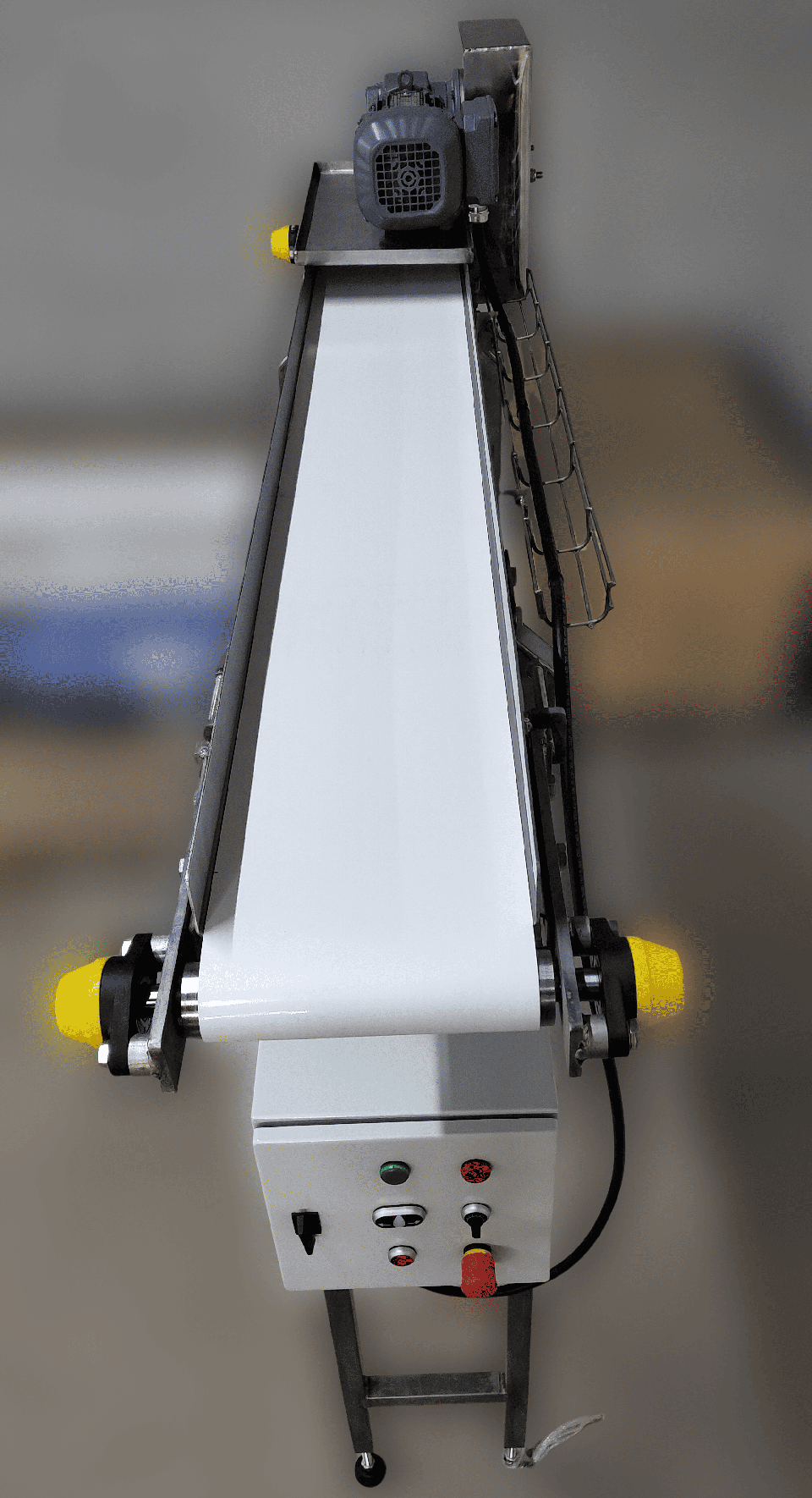 Стрічковий конвеєр для виробництва цукерок, подібних до Raffaello, поєднує сучасні технології та надійні матеріали. Конструкція з нержавіючої сталі та стрічка Reveyron забезпечують довговічність, гігієнічність і акуратне транспортування продукції.