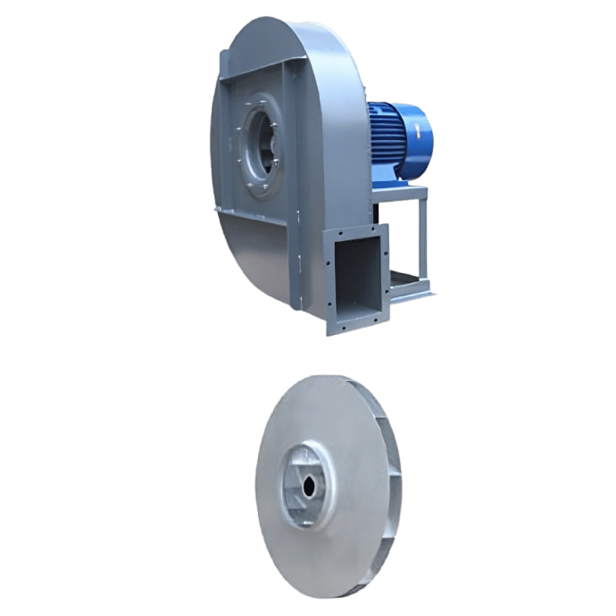 Робочі колеса виготовлені зі сталевого листа з зварною конструкцією та мають високоефективні лопатки, загнуті назад (backward-curved blades). Колеса проходять ретельне статичне та динамічне балансування та безпосередньо з’єднані з валом електродвигуна, що забезпечує стабільну роботу при високих навантаженнях.