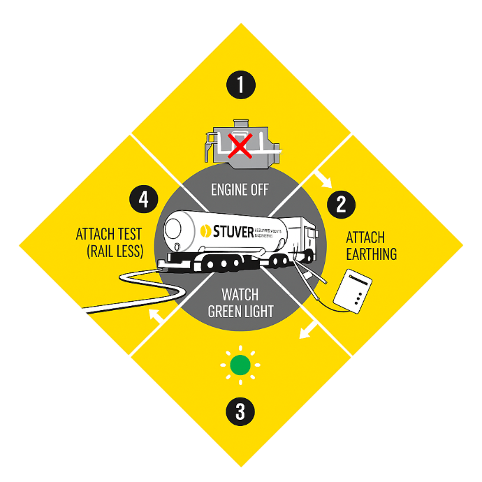 Системи заземлення та контролю статичної електрики (TES01, MGS01, S604, S804): запобігають накопиченню статичного заряду та іскроутворенню, забезпечуючи безпеку під час роботи з вантажівками, металевими бочками та Big Bags.
