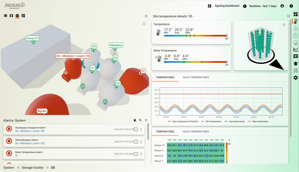 AgroLog TMS6000 — це найпотужніша та найінтелектуальніша система моніторингу температури зерна в портфелі AgroLog. На відміну від портативних систем, TMS6000 забезпечує постійний, автоматичний, централізований моніторинг усіх силосів і дозволяє операторам та технічним директорам контролювати стан зернової маси в режимі реального часу, без ручних обходів і підключень.