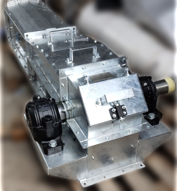 У рамках проєкту було розроблено та впроваджено цепний конвеєр продуктивністю 12 т/год, виконаний за конструкцією типу "гусяча шия". Конвеєр призначений для транспортування пелет (гранул із насіння).