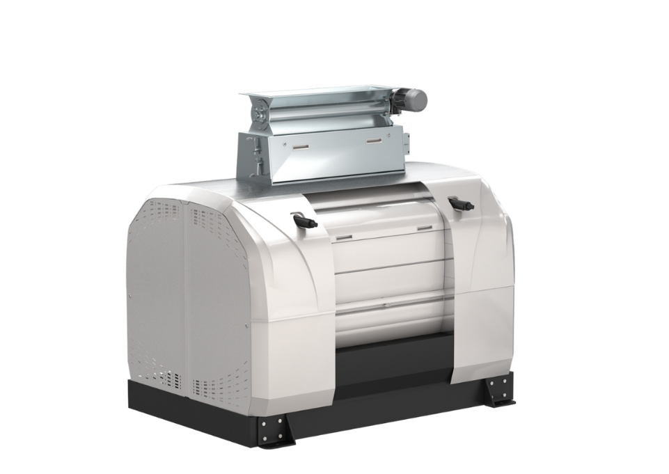 Корпус машини посилений полімерним наповнювачем для зменшення вібрацій, а запатентована система відведення конденсату підвищує ефективність роботи. Подвійні магніти на вході забезпечують додатковий захист від металевих домішок. Гідравлічний блок із акумулятором підтримує постійний тиск між валками, а регулювання товщини пластівців можливе без відкриття кришок машини, що робить процес більш зручним та швидким.