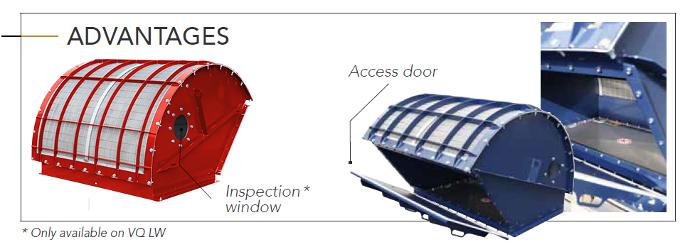 VIGIFLAM VQ забезпечує надійний захист від низького тиску, ефективно запобігаючи поширенню полум’я та розжарених частинок. На ранніх етапах вибуху відкривається вибуховий отвір, через який полум’я та незгорілий пил спрямовуються у вогнегасник. Витікання полум’я за межі VQ обмежується завдяки розсіюванню енергії в фільтруючому елементі, що знижує температуру горіння нижче рівня займання. Пил залишається в VQ, а гази виводяться в атмосферу.