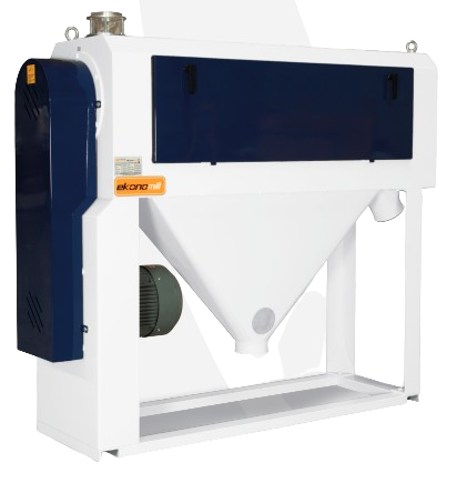 Вимольна машина EKOKF є однією з основних машин у розмольній секції борошномельного комплексу, яка збільшує вихід борошна в процесі помолу, видаляючи його з висівок за допомогою ротора, що швидко обертається. Система використовується для пшениці м'яких та твердих сортів, а також жита.