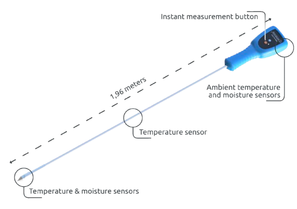 Рішення ідеально підходить для підлогового зберігання, ангарів, куп зерна, насіння, торфу, тріски, пелет та інших сипучих продуктів, де монтаж стаціонарних сенсорних ліній є складним або надто дорогим. Один датчик можна легко переставляти між різними партіями, локаціями та складами, мінімізуючи трудовитрати на ручні заміри та підвищуючи точність контролю.
