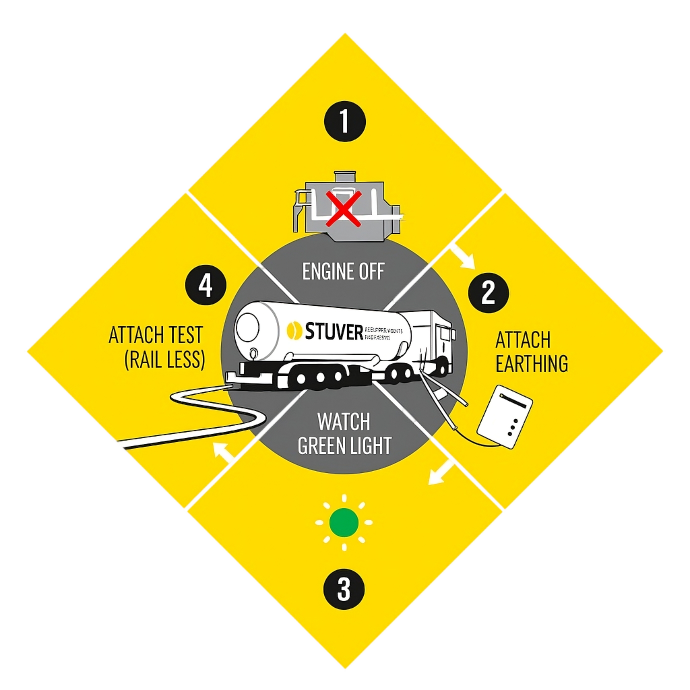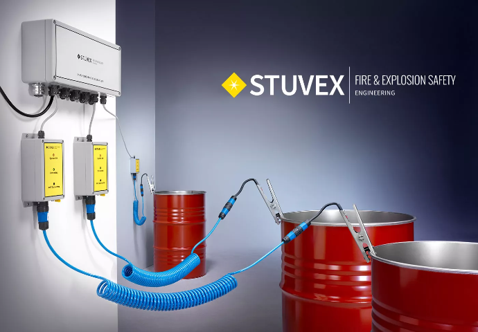 Компанія StuvEx Safe-Ground пропонує комплексні рішення для безпечного заземлення та з’єднання в небезпечних зонах, де присутні легкозаймисті рідини, порошки або пил. Ці системи призначені для запобігання займанням, спричиненим неконтрольованими електростатичними розрядами, шляхом безпечного розсіювання статичної електрики.