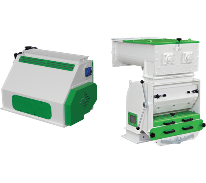 Живильник молоткової дробарки — це ефективна система для рівномірного змішування та дозування продукту в дробарку. Винтові конвеєри, що обертаються в протилежних напрямках (для VHF 400), забезпечують стабільну швидкість подачі. Автоматичне регулювання швидкості відповідно до навантаження на двигун мельниці підвищує ефективність роботи (доступно для автоматизованих заводів). Система включає пневматично керований магнітний блок для легкого очищення, а також спеціальну повітряну систему для видалення небажаних важких предметів. Крім того, роликова система подачі рівномірно розподіляє продукт по всій ширині (крім VHF 400), що сприяє більш ефективному подрібненню.