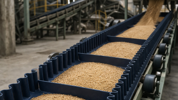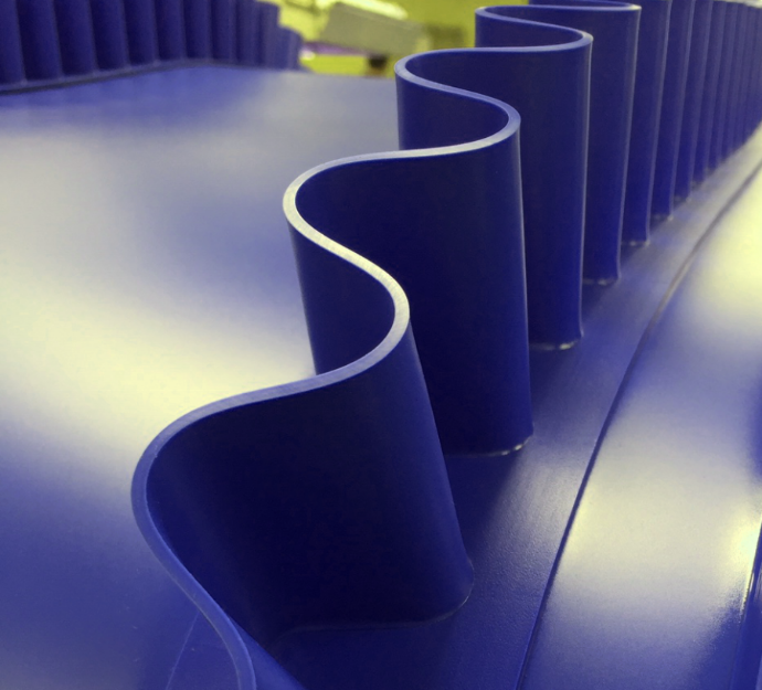 Полімерні стрічки з бортами, профілями та перегородками використовуються для транспортування матеріалів без просипання та зміщення.